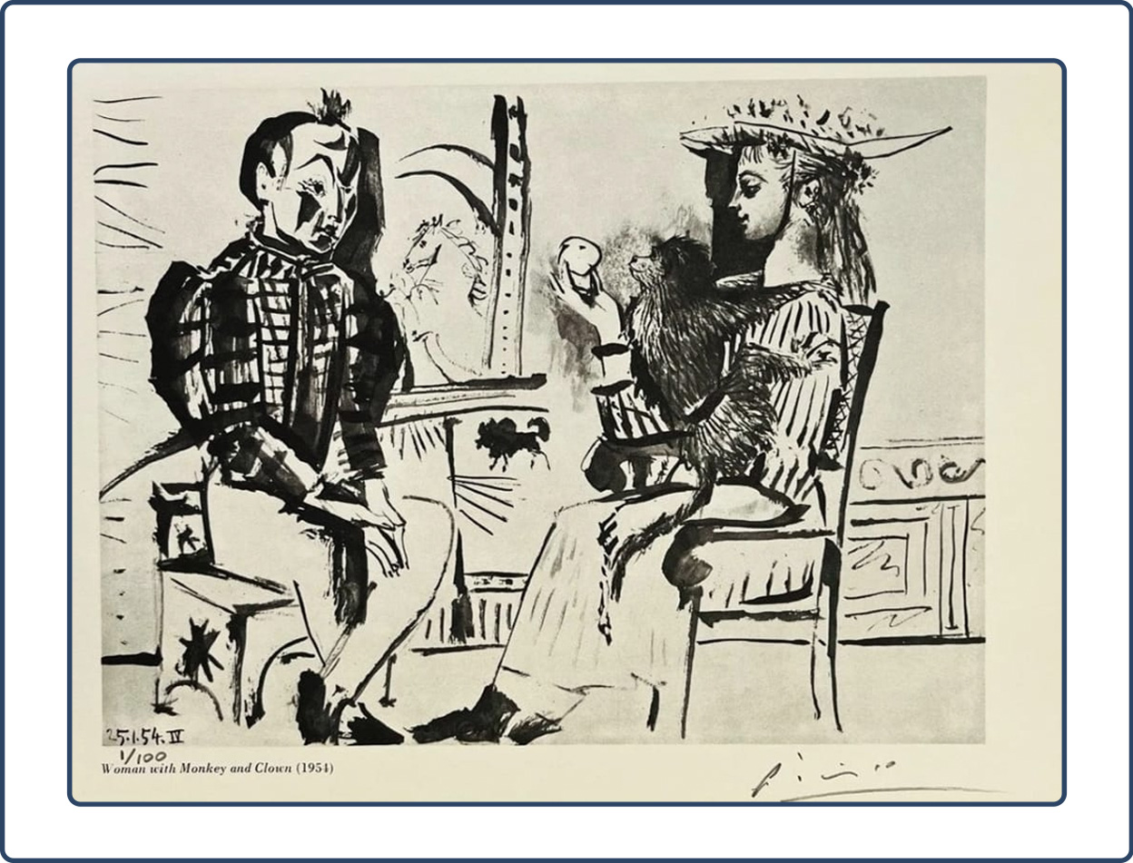 Name of Print: Woman with Monkey and Clown, 1954